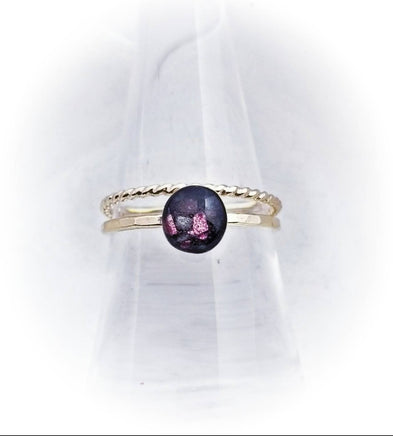 This ring is made using your loved one's ashes. The band is 14k gold filled.