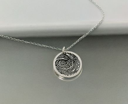 These fingerprint necklaces are made using a photo of your loved one's fingerprint. The photo will be enhanced and darkened to the best of our ability using digital design. Please note that all fingerprints are different and may not always turn out super crisp, however I do my very best to make them look perfect. The fingerprint will be cropped into a circle to fit the design as pictured.