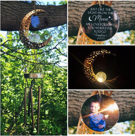 This beautiful windchime can be personalized with a photo of your loved one (or pet).