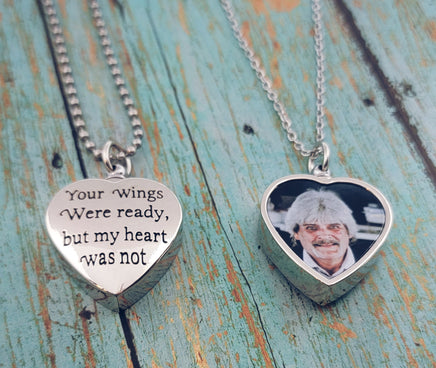 The 1" heart photo pendant doubles as a mini urn to hold a small amount of your loved one's ashes. These may be used for human or pet ashes and come with instructions and a funnel for filling.