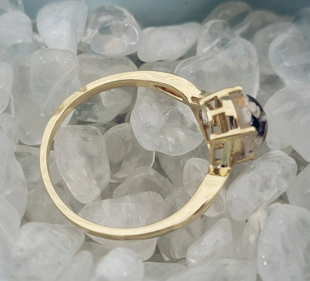 **Please leave a note including the STONE COLOR you'd like** These rings are available in half and whole sizes adjustable-12. The stone pictured is clear (ashes visible 100%) with a few specks of RG included. All ashes vary in color and texture, meaning all clear stones are unique and cannot be replicated.