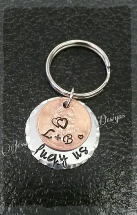 1 Lucky Us Penny Keychain * Anniversary Gift * Wedding Gift * Marraige Year* Any year you'd like *Hand Stamped* Hearts * Personalized