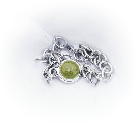 This stainless steel bracelet is made using your loved one's ashes. The stone can be made in any color. Please see photo 2.