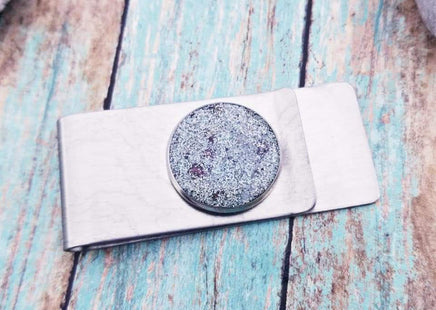 This stainless steel money clip is made using your loved ones ashes, flowers, or hair. The stone can be made in many colors (please see color chart). The stone pictured is TUR.