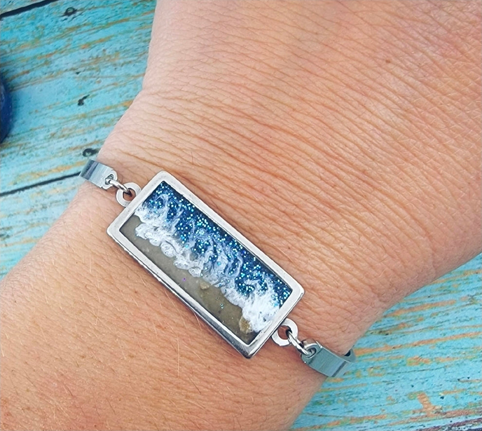 Beach Cremation Bar Bracelet Made with your loved one's actual ashes
