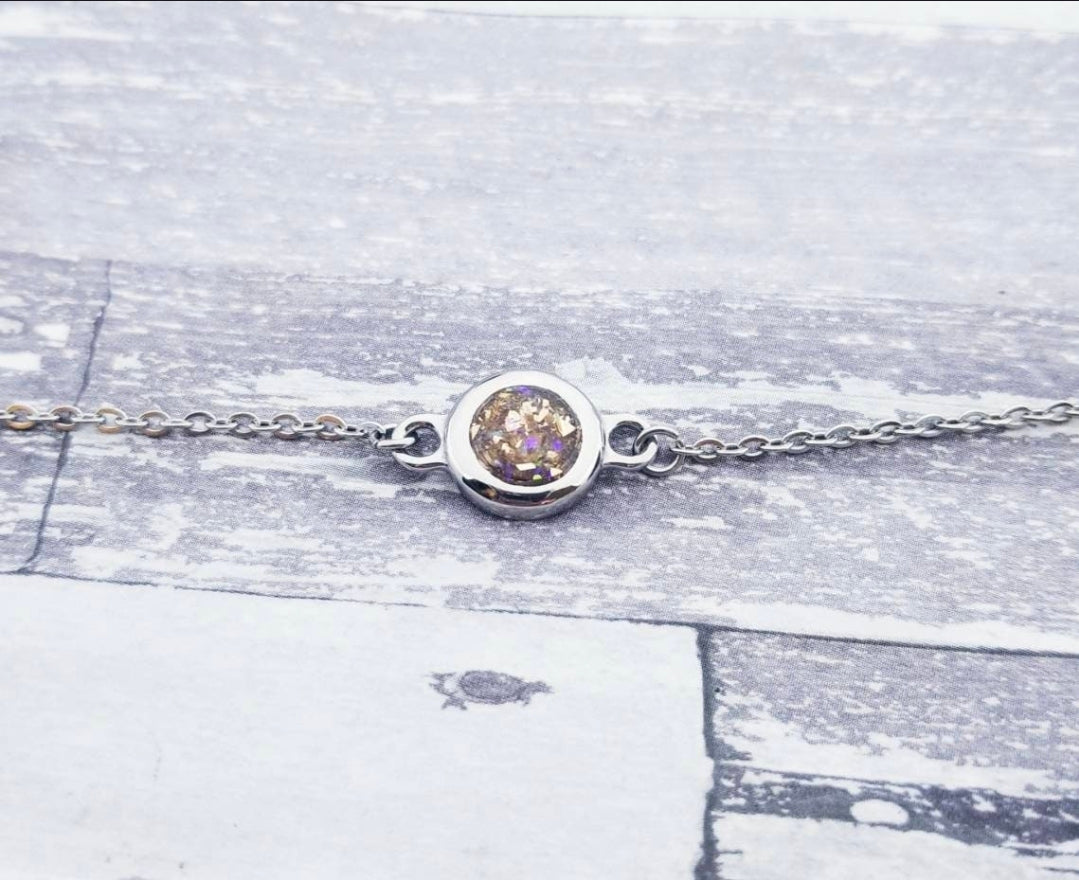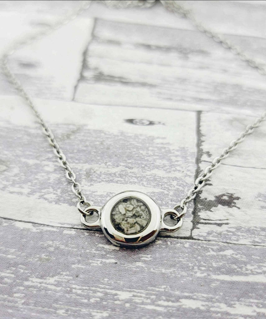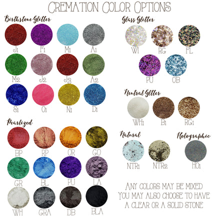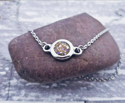 These beautiful, dainty necklaces are made using your loved one's actual ashes. You may be able to see the ashes in some cases, but I have added a touch of glitter to highlight the piece.