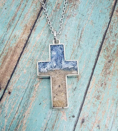 Cross Beach Cremation Bar Necklace Made with your loved one's actual ashes