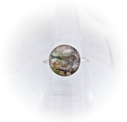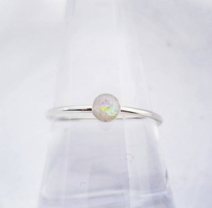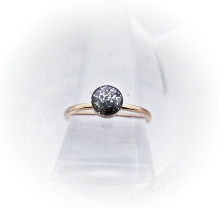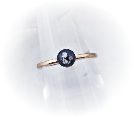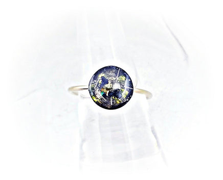 The stone in this ring is made using your pet or loved one's ashes, along with a resin blend of pigments and glitter.
