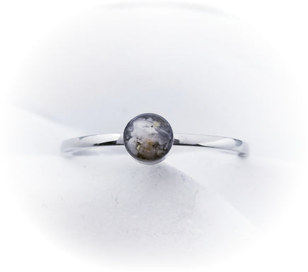 This sterling silver ring is made using your loved one's ashes and a special resin blend creating the birthstone of your choice. The stone is 4mm. The punk stone in photo 1 is OR mixed with RG.