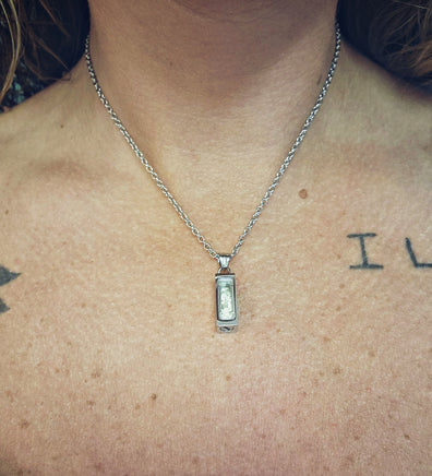 These stainless steel cremation Necklaces feature a 15mm rectangle/bar which doubles as a mini urn.