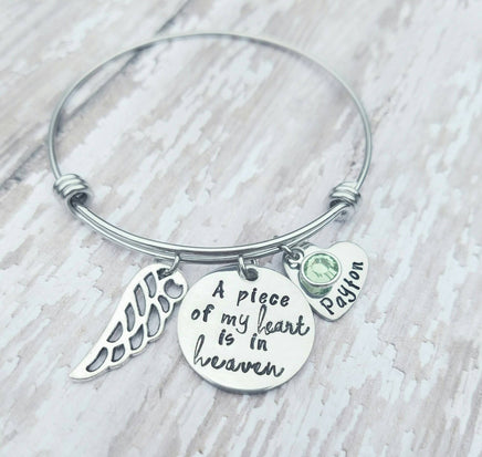 Memorial Bracelet - A piece of my heart is in heaven - Sympathy Gift - Child loss bracelet - Childhood Cancer - Angel Wing Bracelet Custom