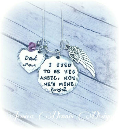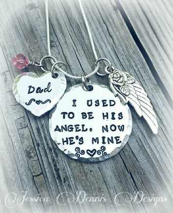 Memorial Necklace * I used to be his Angel, now he's mine - Personalize - Dad - Mom -Birthstone - In Memory Of