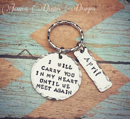 Personalized Memorial Keychain - Hand Stamped Key Chain - Until we meet again - Always in My Heart - Sympathy Gift