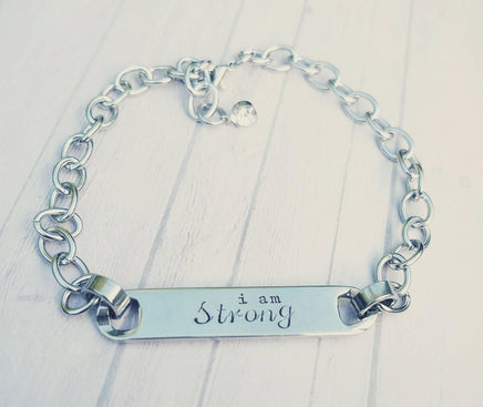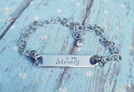 Stainless Steel Custom Hand Stamped Bracelet - Adjustable Length - I am Strong Bracelet - Sobriety Gift - Reminder Bracelet - Customize it!