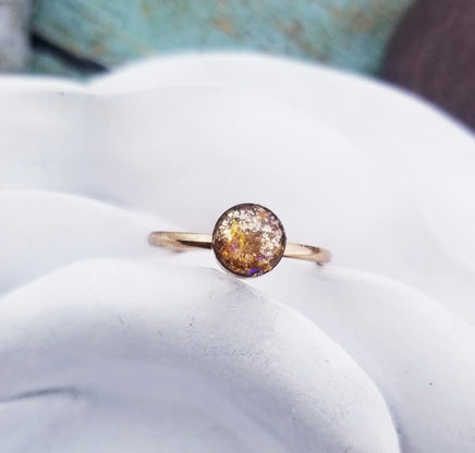 This rose gold plated ring is made using your loved one's ashes and a special rose gold iridescent speck resin blend creating the stone shown.