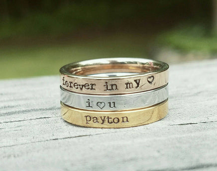 Stacking Personalized Ring - Wear alone or as a set! - Stainless Steel Hand stamped rings - Name Ring - Rose Gold, Gold, and Silver - Custom
